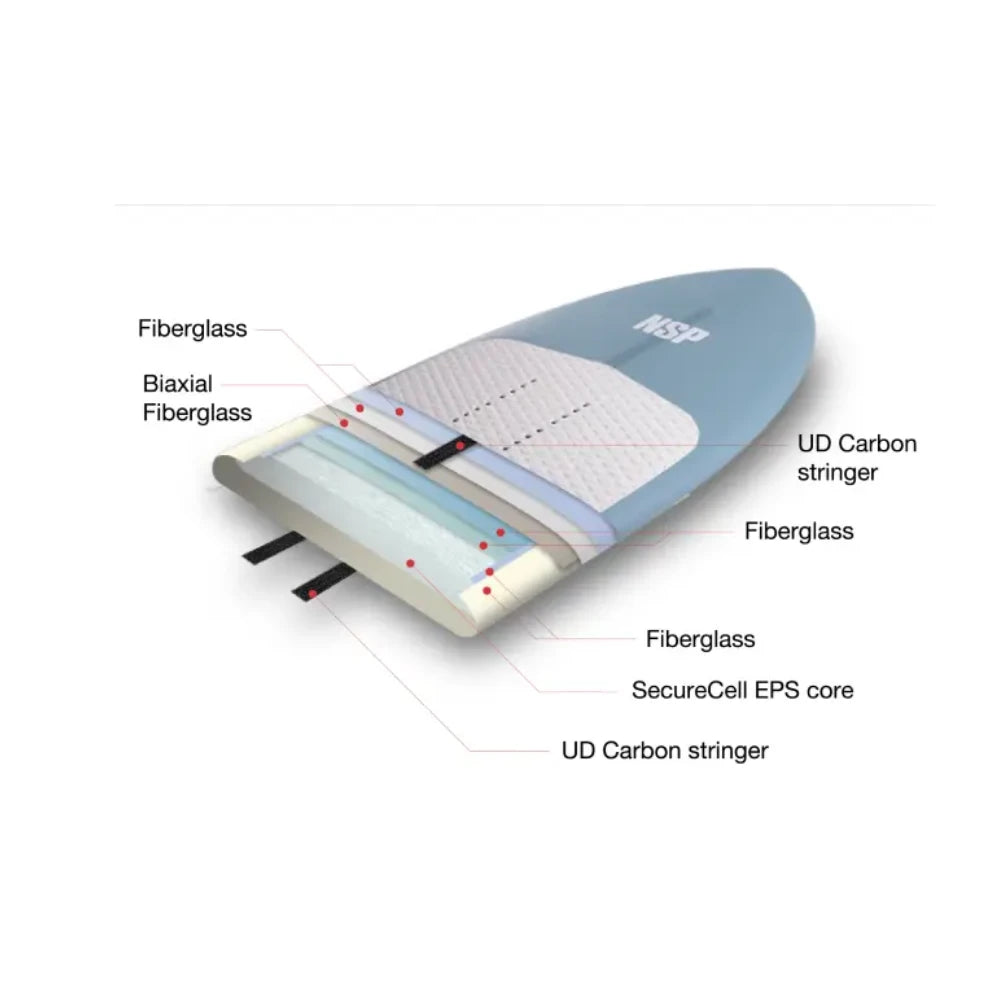 • The volume distribution is designed to reduce the board’s swing weight when you are on the foil and allows for quick directional changes and gybes.